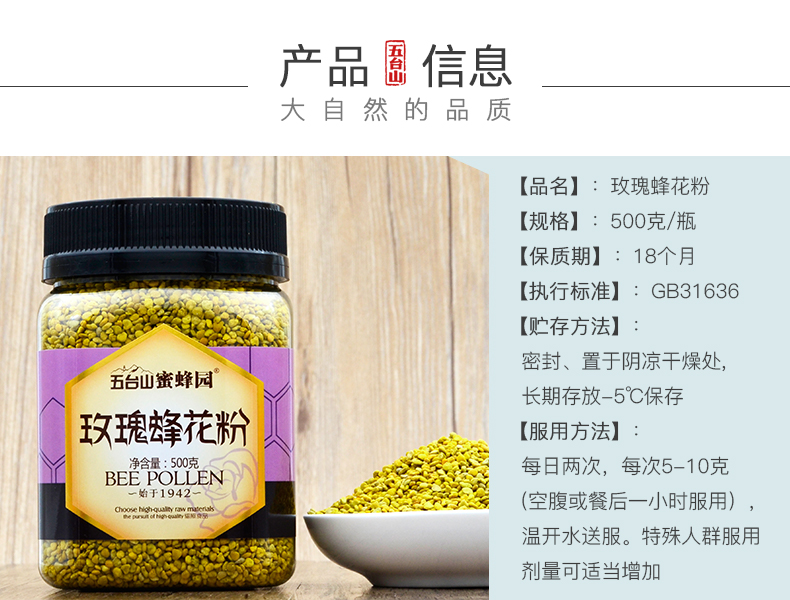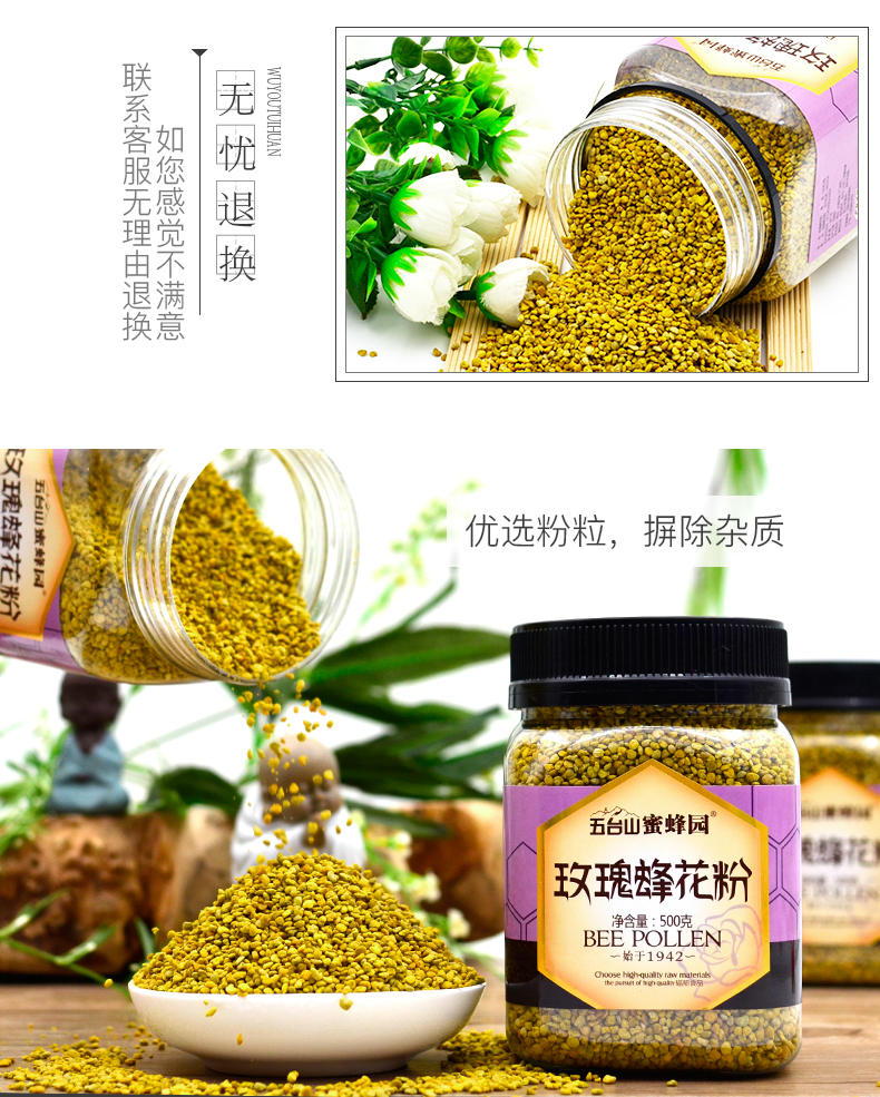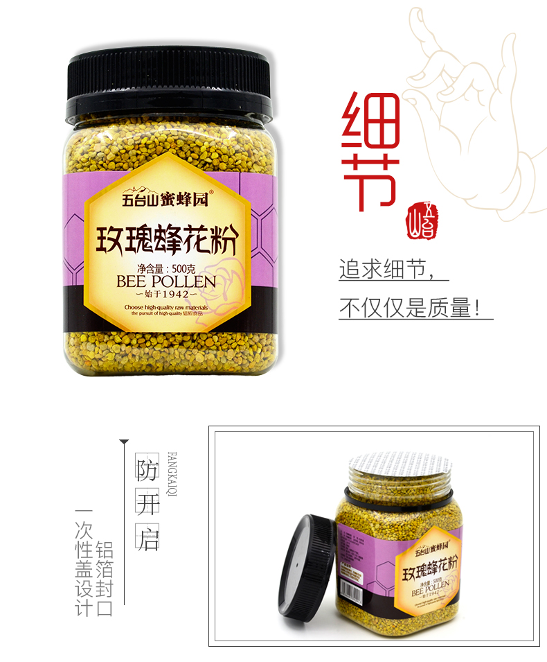 五臺(tái)山蜜蜂園玫瑰蜂花粉500克